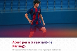 体育资讯1月21日讯 巴萨官方宣布和B队20岁中场帕列戈(Marcos Parriego)解约。