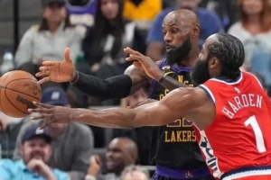 快船这里哈登下去,第四节一度只能靠乔丹·米勒打,差点被湖人翻。