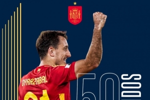 体育资讯11月16日讯 世预赛欧洲区小组赛E组第5轮,西班牙对阵格鲁吉亚,奥亚萨瓦尔此役代表西班牙首发登场,这名28岁的前锋在此役迎来国家队第50场比赛。