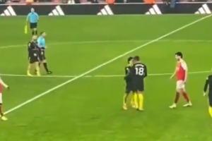 曼联3-2阿森纳赛后,利桑德罗与卡塞米罗庆祝