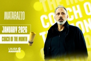 24直播网01月28日讯 西甲官方宣布,皇家社会主帅马塔拉索当选1月最佳教练。他去年底上任后率队保持不败,1月4轮联赛3胜1平,战平马竞并战胜巴萨,最终在投票中胜出。