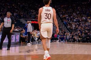 库里在2+1后不舒服走到场边,回了替补席,最后回了更衣室