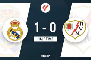 半战战报:皇马1-0巴列卡诺,维尼修斯破门终结13场联赛进球荒,贝林厄姆伤退。