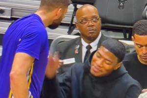 GIF-东契奇超难后仰 克莱伯兴奋甩毛巾冲向八村