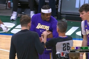 体育资讯11月17日讯 昨天湖人战胜雄鹿的赛后,双方球员以及裁判针对比赛用球展开了一段拉扯。