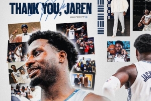 灰熊官推随后晒图,感谢小贾伦·杰克逊八年来为灰熊所做的贡献。官推列举了期间小贾伦获得的荣誉:最佳新秀一阵、两次全明星、两届盖帽王、三次最佳防守阵容、一次最佳防守球员。