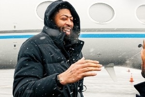 浓眉来到了球队主场,参观了更衣室,进行了定妆照拍摄。从照片中可以看到,浓眉的受伤依然还带着护具。