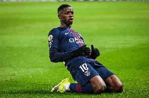 体育资讯2月9日讯 法甲第21轮比赛上演法国国家德比,巴黎圣日耳曼在主场迎战马赛。本场比赛,登贝莱上半场上演了梅开二度的好戏。