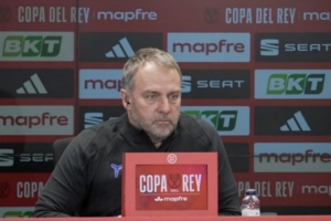 24直播网02月11日讯 巴萨主帅弗里克出席赛前发布会,确认拉什福德、拉菲尼亚因伤缺阵。他高度评价马竞,称其为强大对手,并强调球队渴望晋级决赛。发布会还谈及草皮、球员状态及心理支持等问题,展现了球队对180分钟较量的全面准备。
