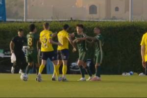 体育资讯02月11日讯 季前热身赛,浙江vs俄超球队罗斯托夫,罗斯托夫99号球员报复性动作,与刘浩帆发生冲突,吃到红牌,双方爆发大规模冲突,比赛在进行了大概23分钟便宣布终止。