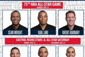全明星新秀赛及三分&扣篮大赛裁判:Nate Green、Phenizee Ransom、Matt Myers。