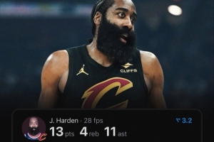 据统计,加盟骑士后的前三场比赛,哈登已累计得到58分16篮板26助攻,并列成为队史最快达成50+分和25+助攻的球员。